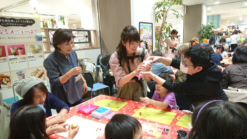 ミニパフェ作成に親子連れを中心に沢山の方がチャレンジ